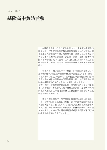 基隆高中師生一行人於 109 年 12 月 4 日上午至文學院參訪