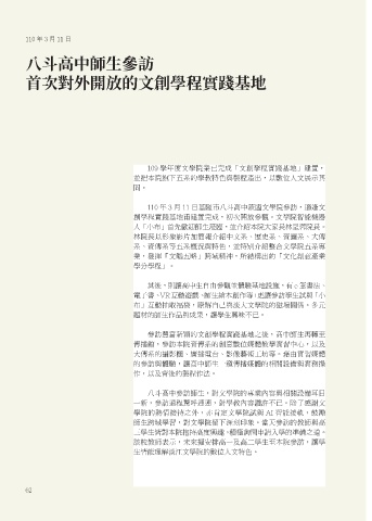 110 年 3 月 11 日基隆市八斗高中蒞臨文學院參訪,適逢文